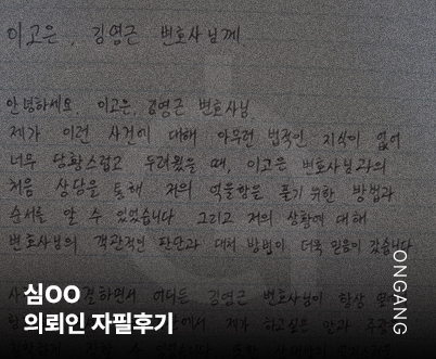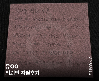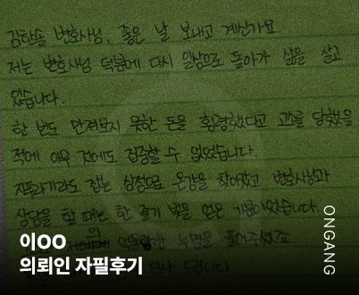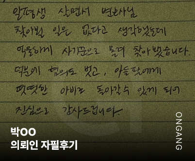 온강의 도움 없이는 지금 이 자리에 없었을지도 모릅니다. 묵묵히 제 편이 되어주신 변호사님께 깊이 감사드리며, 법적인 도움이 필요한 분들께 꼭 추천드리고 싶습니다. 9월 26, 2025