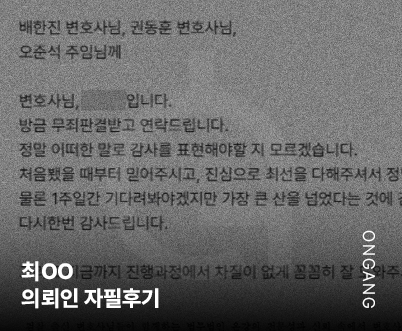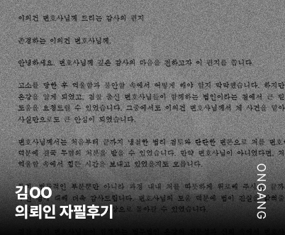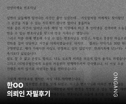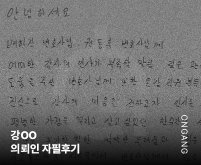 온강의 변호사님 직원분들 덕분에 이렇게 일상생활로 돌아온 것 같아 너무 감사드립니다.