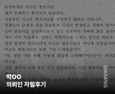 혼자였다면 많이 힘들었을 수 있을 텐데, 변호사님의 전문성과 적극적인 대응 덕분에 좋은 결과를 받을 수 있었습니다.