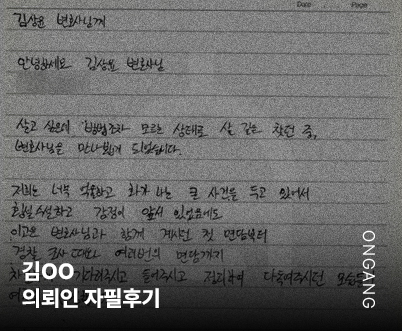 억울한 사연에 귀 기울여 주시고 변호에 힘써주시는 변호사님들의 노고에 진심으로 존경을 담아 이 편지를 드립니다.