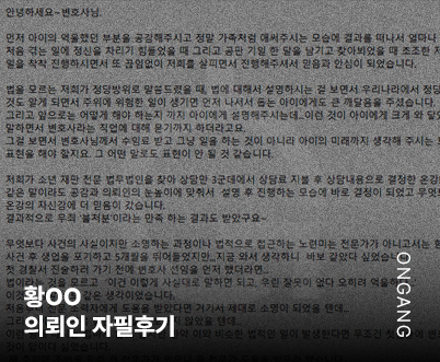 온강 변호사님들이 저희 모자에게 더없이 든든한 편이 되어주어서 정말 감사드립니다.